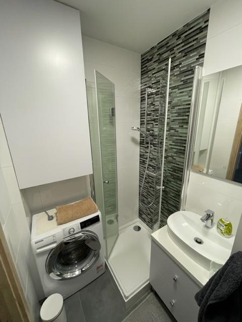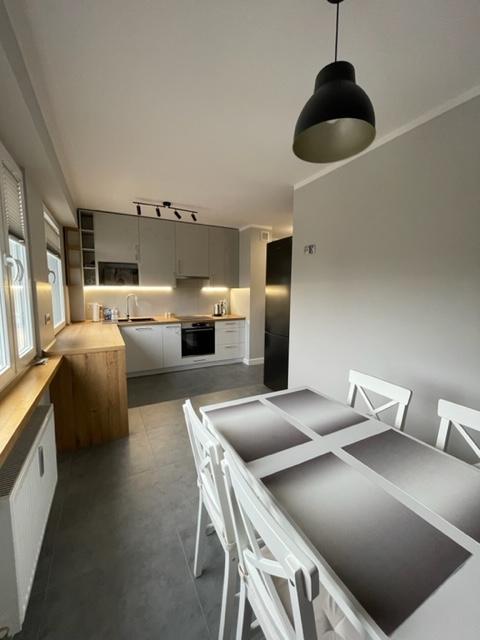 Kuchnia w pełni wyposażona, wszystkie niezbędne sprzęty agd, garnki, szklani, talerze, sztućce, na wyposażeniu również pralka, telewizor, odkurzacz, żelazko.