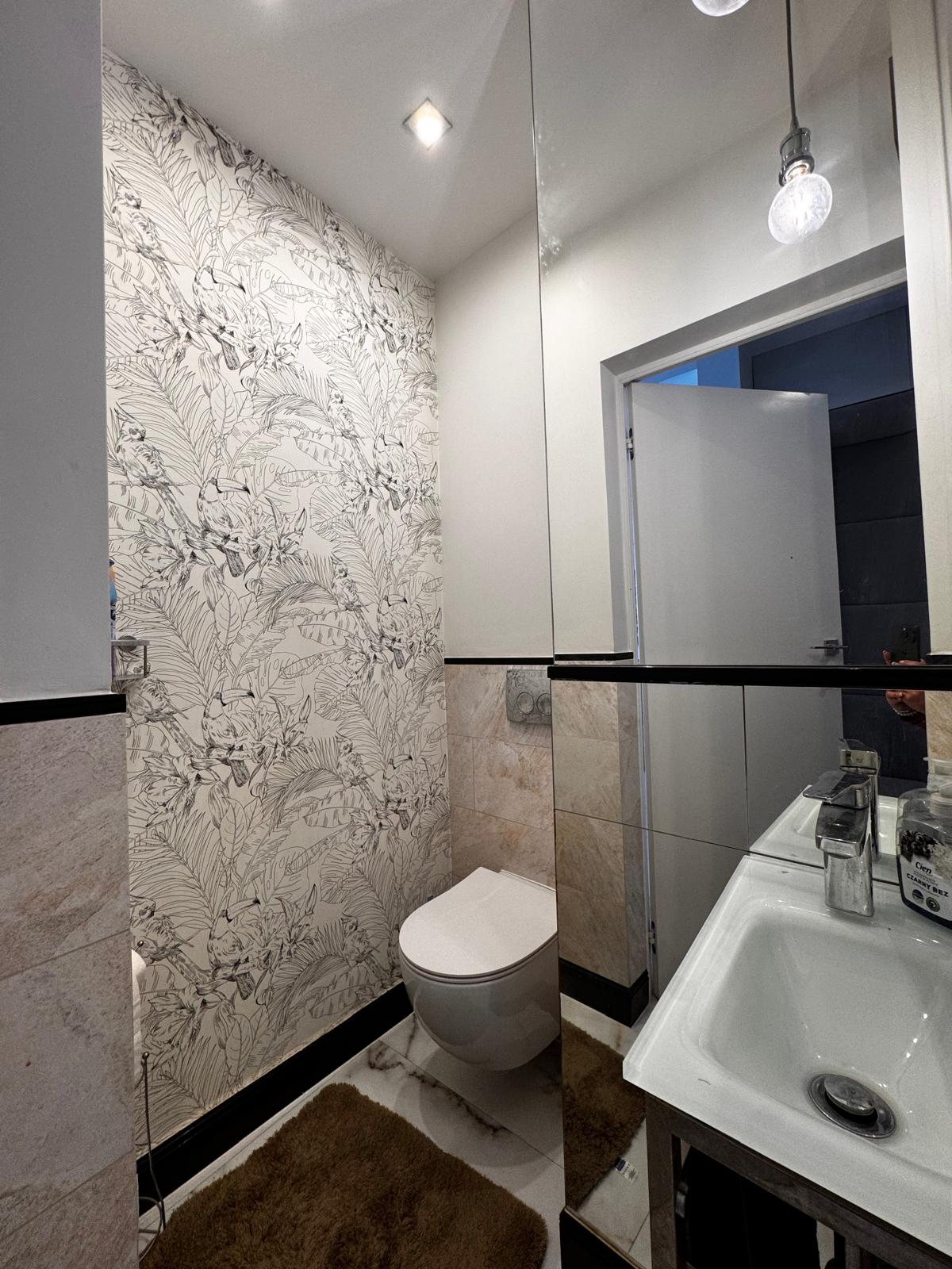 Apartament posiada oddzielną, dużą łazienkę, osobne WC, pomieszczenie gospodarcze (może słyżyać jako garderoba) oraz drugą garderobę, znajdującą się w sypialni z balkonem. Rozkład mieszkania jest niezwykle funkcjonalny i komfortowy, a jego stan techniczny nie wymaga żadnych dodatkowych nakładów finansowych.