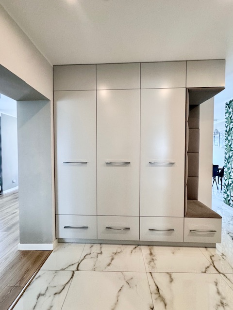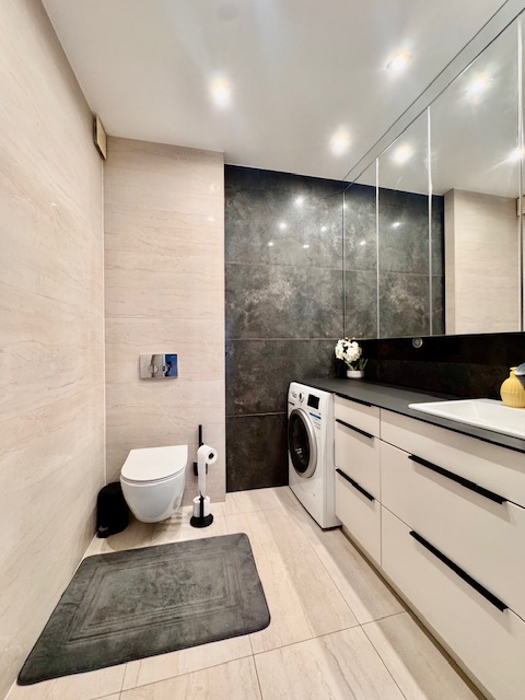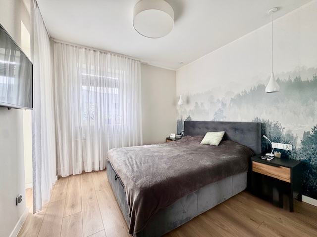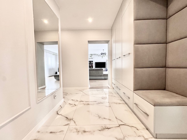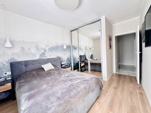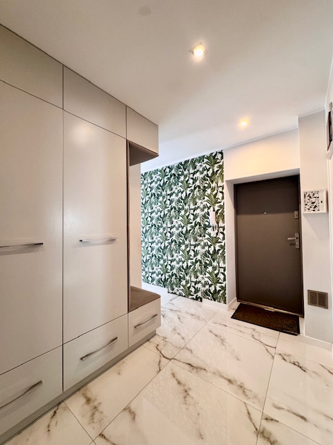 Dodatkowym atutem jest drugi balkon, dostępny z jednej z sypialni, co podnosi komfort codziennego użytkowania i daje możliwość stworzenia prywatnej strefy wypoczynku. Wnętrze mieszkania zostało urządzone z dużym wyczuciem stylu, przy użyciu materiałów wysokiej jakości, z dbałością o detale i spójność aranżacyjną.