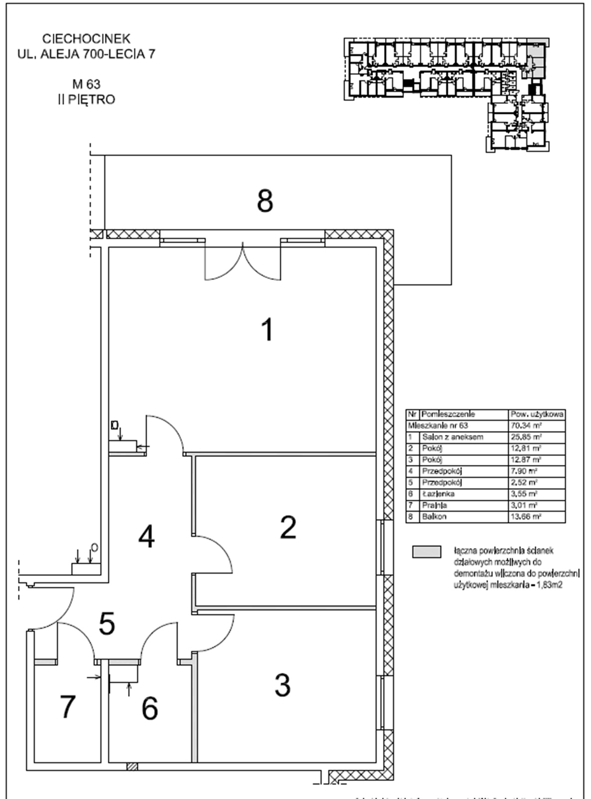 To ogłoszenie prezentuje mieszkanie numer 63 na 2 piętrze o metrazu 70,34 m2.Mieszkanie 3 pokojowe ,które składa się z dwóch sypialni ,salonu z aneksem,łazienki oraz pralni oraz dwóch przedpokoju.